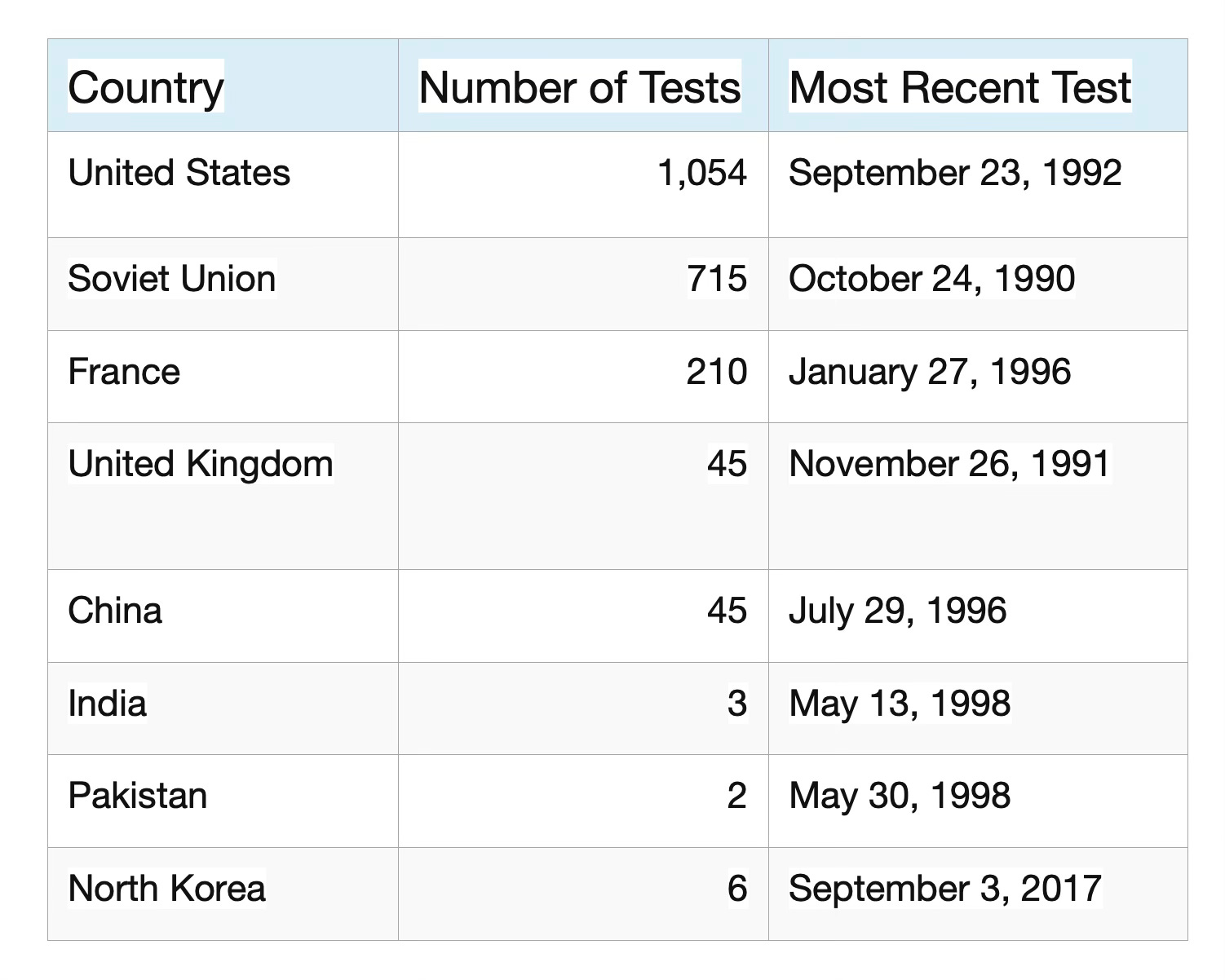 Our knowledge is so deep that in 1992, we stopped testing. All other countries followed suit.